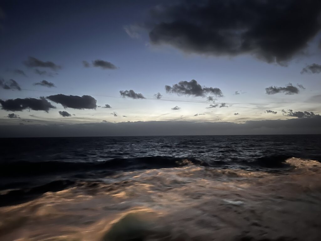 Wir sind aufgestanden, haben gefrühstückt, weiter Richtung Deck 5, geschlafen, gelesen, gearbeitet 😅