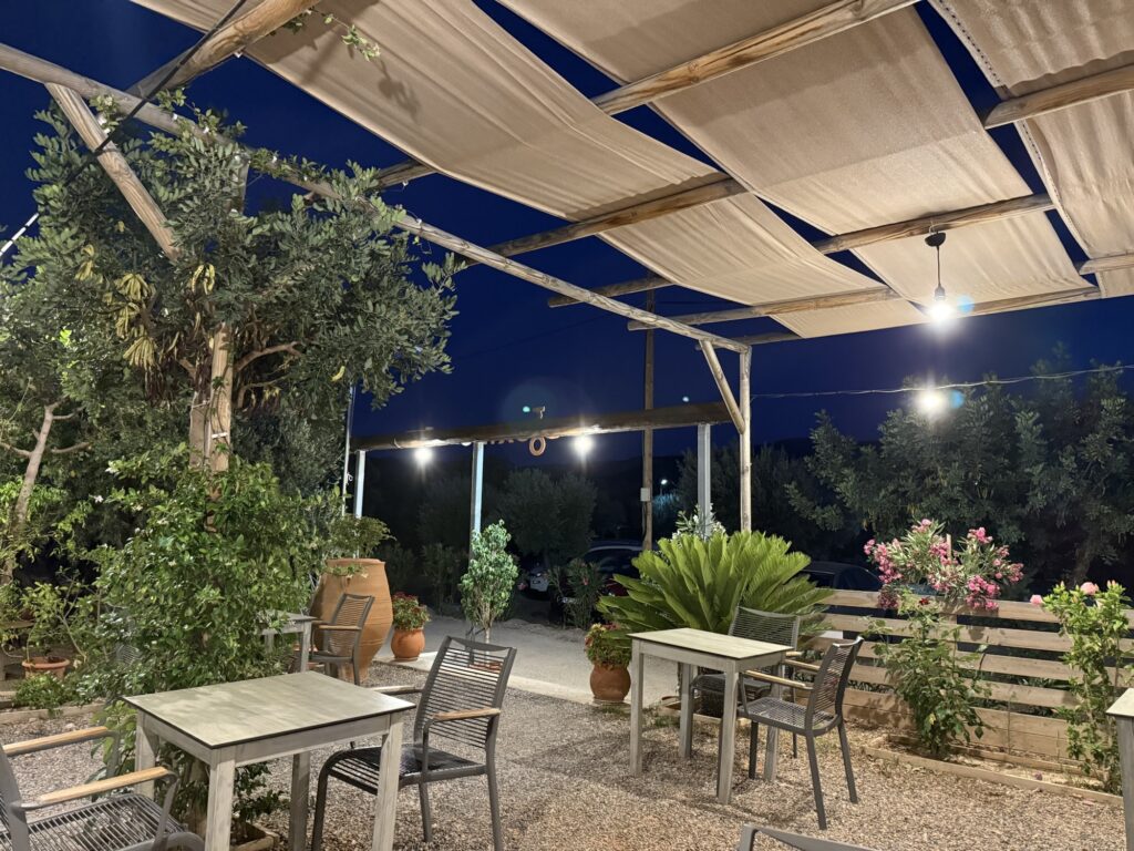 Eine größere Taverne in mitten eines Olivenhaines.
