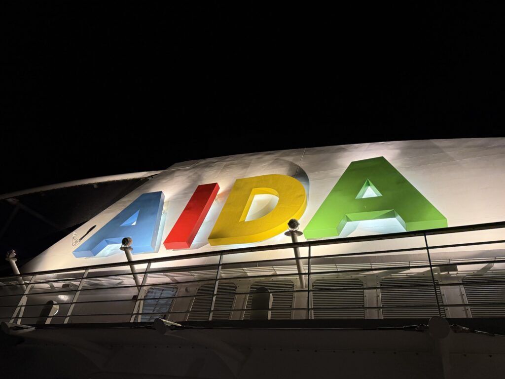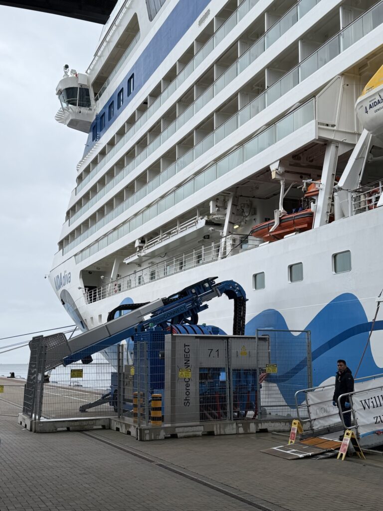 Natürlich hängt die Diva auch schon, wie viele weitere Schiffe von AIDA am Landstrom – wenn es die Häfen denn hergeben: