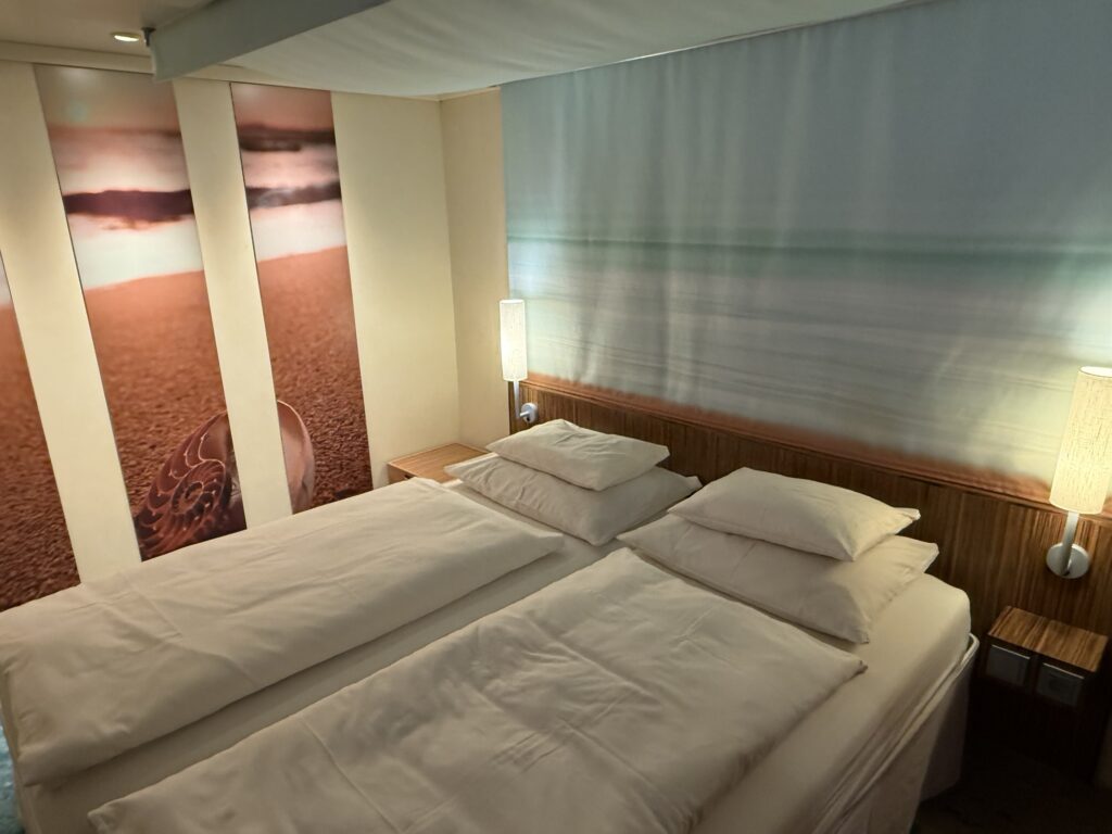 Mit unseren Koffern und mit der Kabine hatten wir unfassbar Glück: wir haben beim Checkin schon die Info erhalten, dass unsere Kabine bezugsfertig ist. Und das um 10:40 Uhr! Keine 30 min auf der Kabine und dann waren auch schon die Koffer da! Wahnsinn!